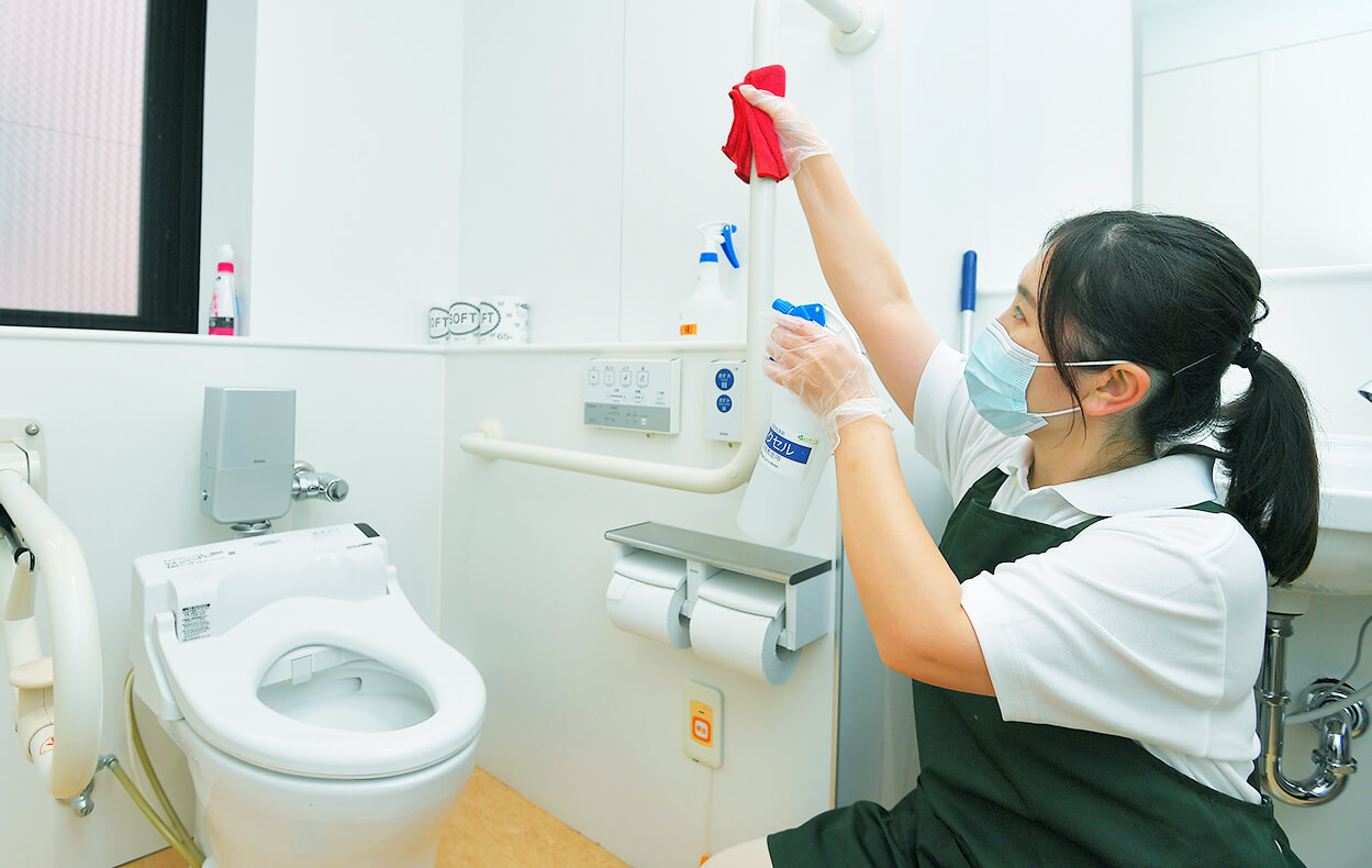 私たちは、ビルメンテナンス・商業施設運営代行・感染対策清掃などをはじめとした、ファシリティ(施設・設備・建物)に関する幅広いサービスを、自社施工にこだわって提供する会社です。