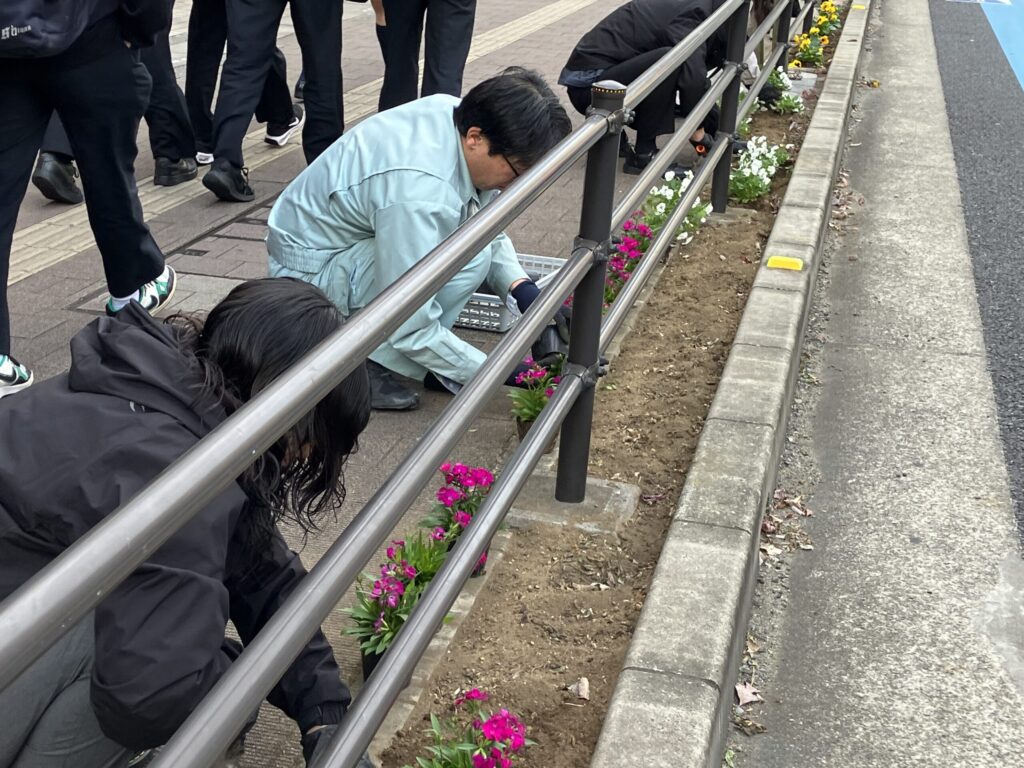 5月・11月に花の植え替え、日々の水やりやごみ拾いなどを通じて、通学・通勤で駅前を通る皆さまが気持ちよく歩ける環境づくりに取り組んでいます。