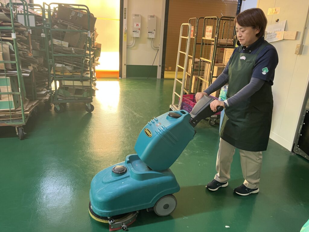 新日本ビルサービス株式会社様には毎日、朝・昼と日に2回日常清掃を行って頂いており、さわやか社員の皆様に元気よく、そして清潔な売場を維持して頂いております。